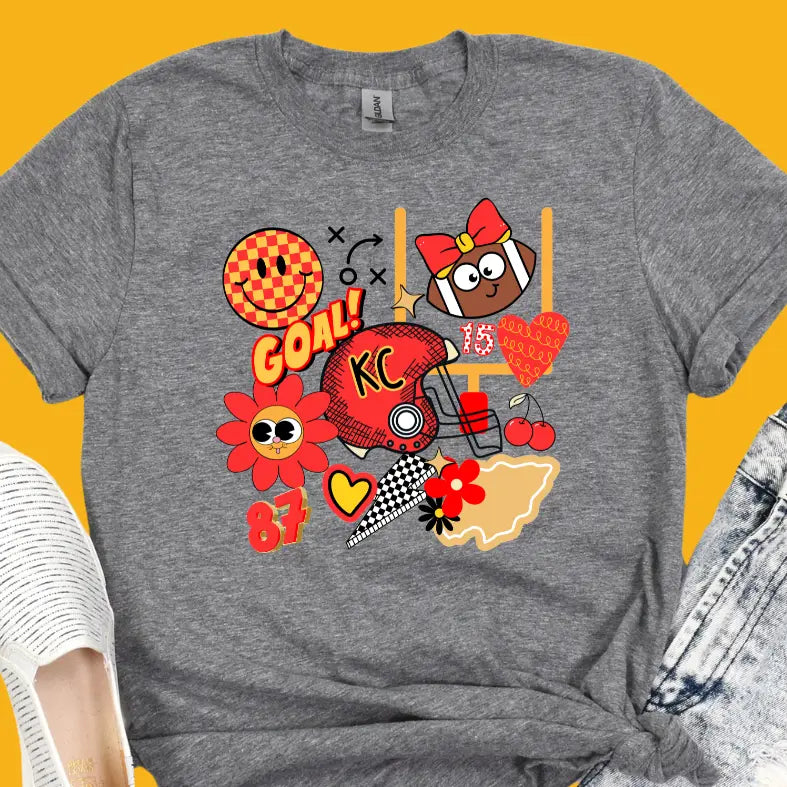 All the adorable doodles make this shirt extra fun for game days! This would be perfect to pair with our red sequin jacket or sequin sparkle skirt! Be the cutest kid at the tailgate with this adorable doodle tee!